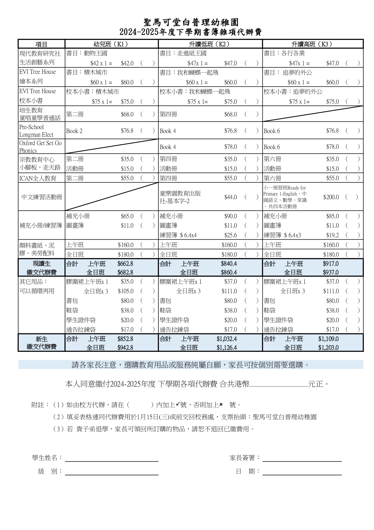 下學期代辦書簿雜項費用